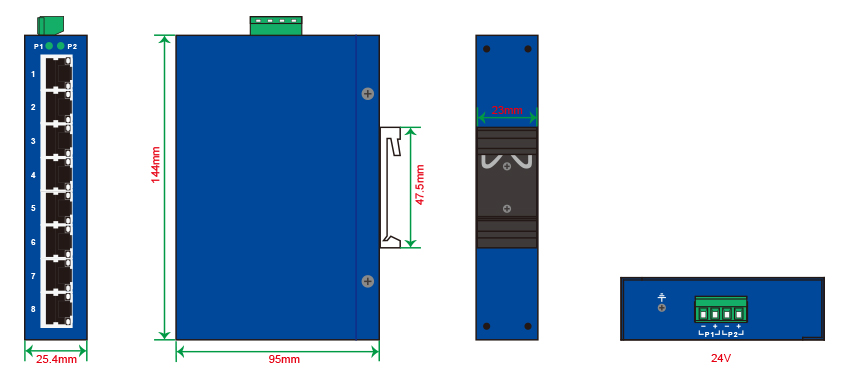 尺寸 25.4(W) x 144(H) x 95(D) mm