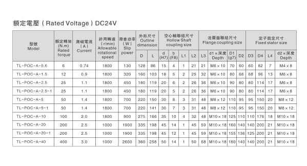 外殼旋轉空心軸磁粉離合器使用安全DC24V直流電壓,法蘭盤輸入、空心軸輸出,空心軸支撐,外殼旋轉。扭矩規格有6Nm、15Nm、25Nm、50Nm、100Nm、200Nm、400Nm等7個標準規格。臺靈機電支持非標準規格定制生產。外殼旋轉空心軸磁粉離合器結構簡單緊湊、低發熱低噪音、降低設備制造、維護成本低、安裝操作方便、耐磨耗、使用壽命長以及安裝方便不占空間等等。適合匹配張力控制器使用,并通過張力控制器調節激磁電流的大小來控制其扭矩的大小,方便、穩定。