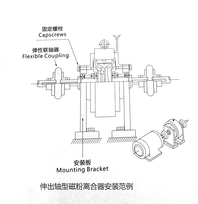 2、需要用彈性耦合器連結負載軸和離合器軸,軸和軸間的直角度、同心度須保證在彈性耦合器容許值之內;