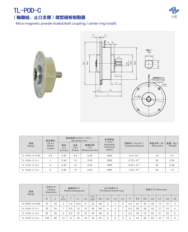 微型磁粉制動器(又稱小型磁粉制動器),采用進口磁粉、軸承等優質材料精工制造,利用磁粉傳遞轉矩,并可通過匹配張力控制器來調節轉矩的大小。微型磁粉制動器是一種高精密伸出軸自動冷卻式制動器,采用DC24V,標準扭矩規格分別有0.5Nm 、1Nm、2Nm、5Nm等4種,5rmin起可供使用,最高轉速為1800r/min,非標準扭矩臺靈機電支持定制生產。
