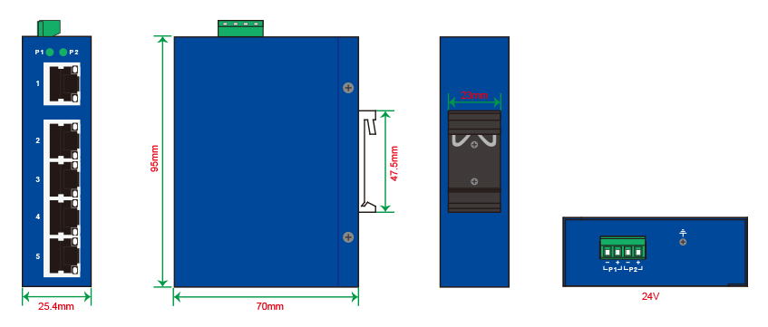 尺寸 | 25.4(W) x 95(H) x 70(D) mm |