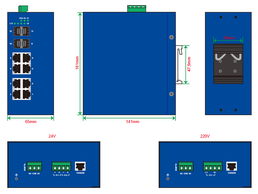 MX12G系列全千非網(wǎng)管型工業(yè)以太網(wǎng)交換機(jī),支持8個(gè)千兆電口和4個(gè)千兆SFP插槽。導(dǎo)軌安裝,24V/220V電壓可選,寬電壓范圍輸入,并提供過載和反接保護(hù)。強(qiáng)抗電磁干擾能力,完全滿足苛刻的工業(yè)應(yīng)用環(huán)境,適用于較復(fù)雜的全千接入場合。