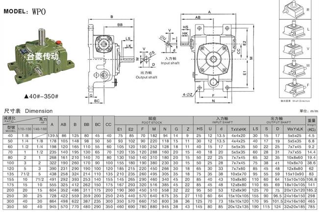 5、輸出、輸入軸位置方向有輸入軸在下及在上;輸出軸向上及向下;輸入軸向上及向下。